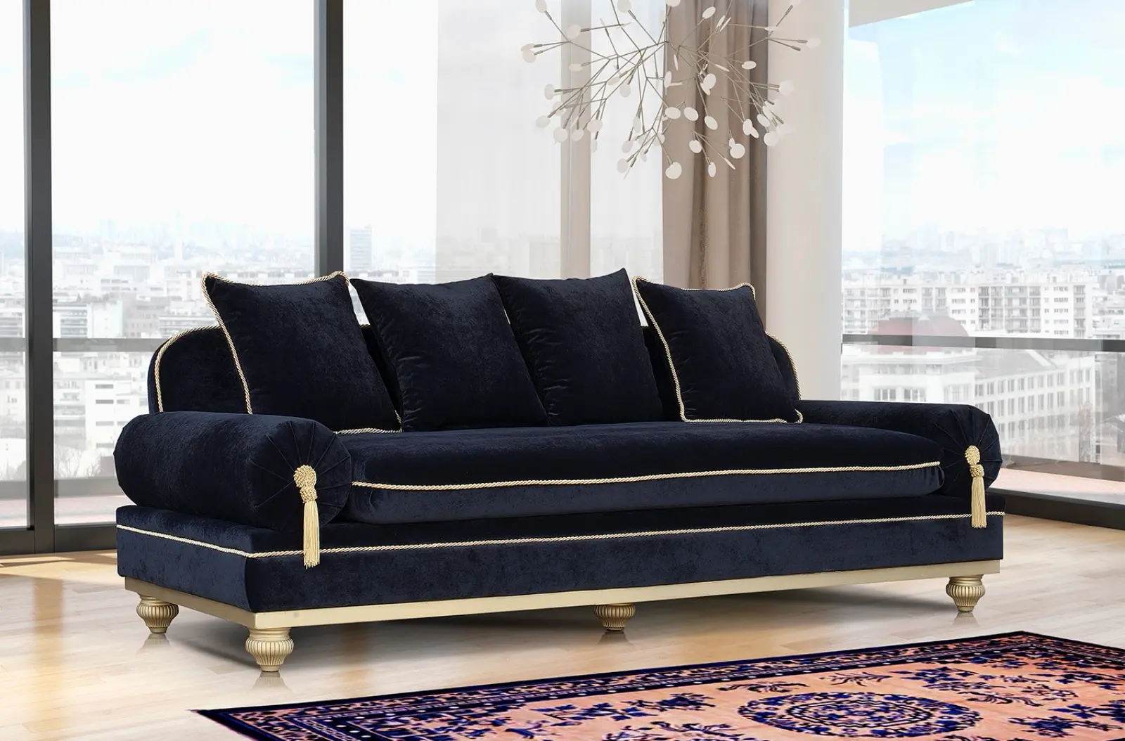 Ένας καναπές για τους λάτρεις των κλασικών επίπλων, μοναδικός και έτοιμος να εντυπωσιάσει με κομψές λεπτομέριες στο περίγυρο καθώς και στην βάση του με μοναδική πολυτέλειας και απαράμιλης ποιότητα κατασκευής.
